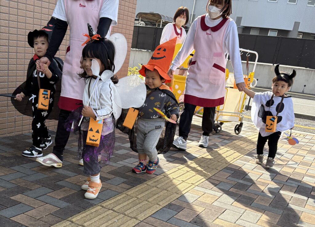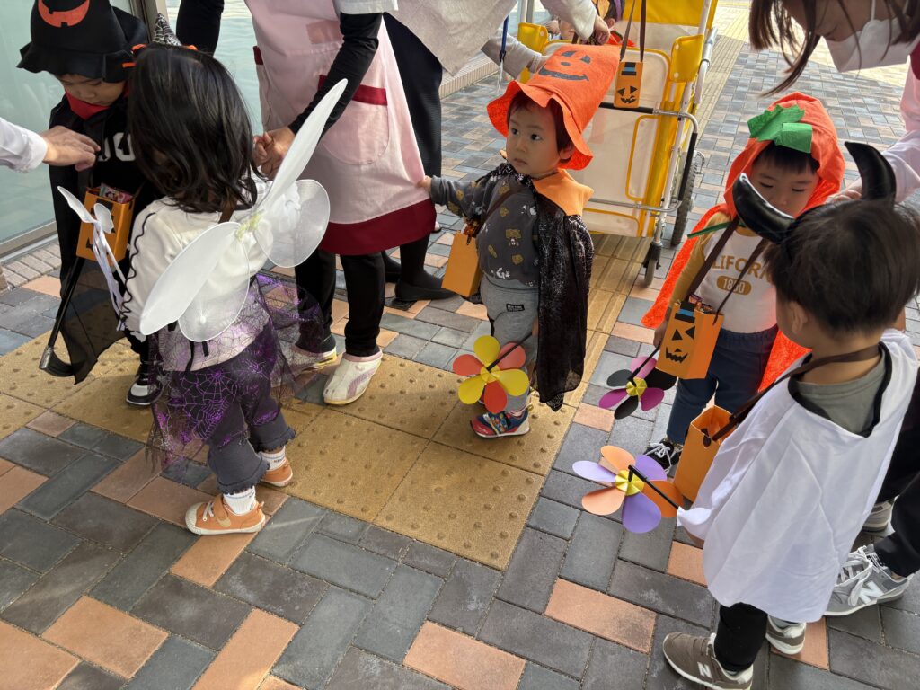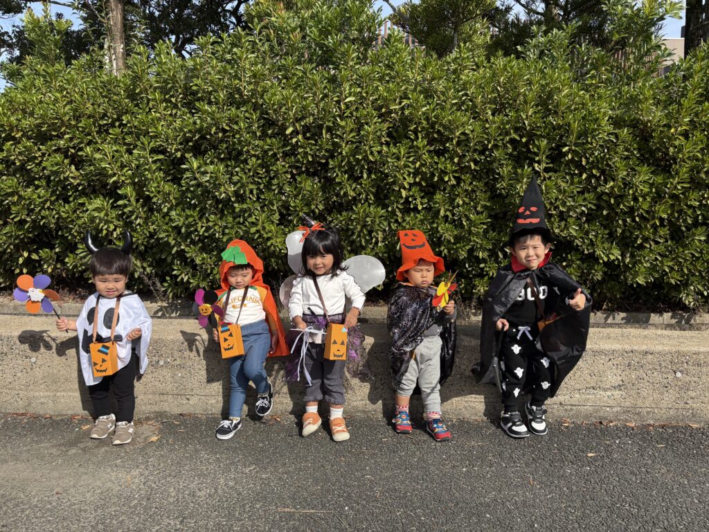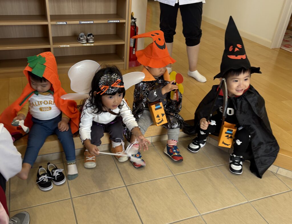 今日は仮装をしてお菓子をもらいに行ってきました!