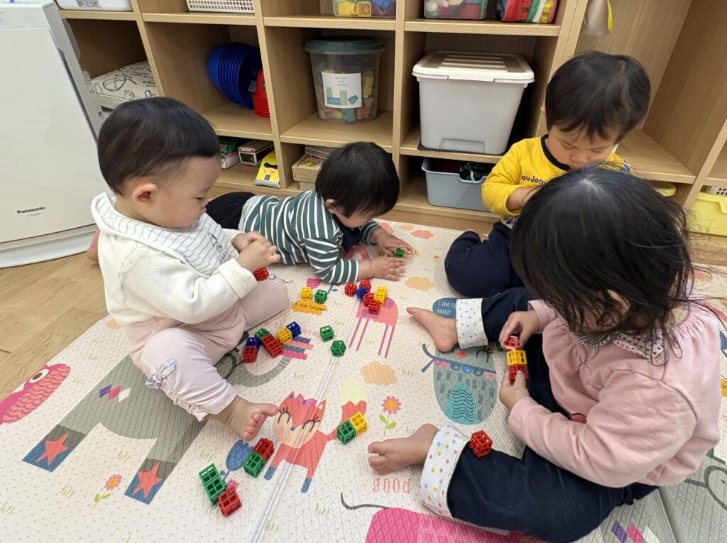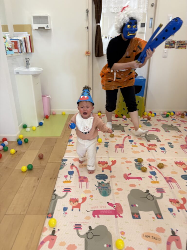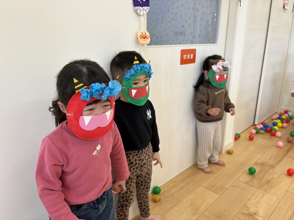 最初はみんな楽しくボール入れに向かって鬼は外~